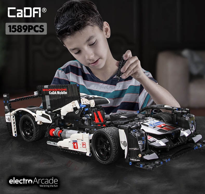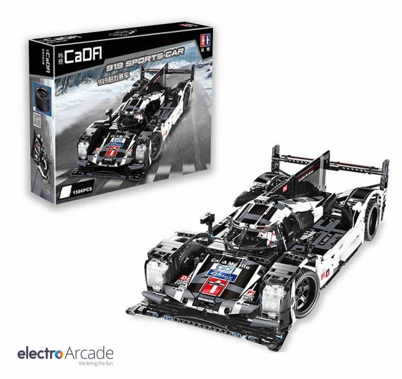 This Cada brick set is a high-quality replica of the Porsche 919 Endurance super sports prototype.  This 1:9th scale brick set consists of 1586 pieces and many moving parts.